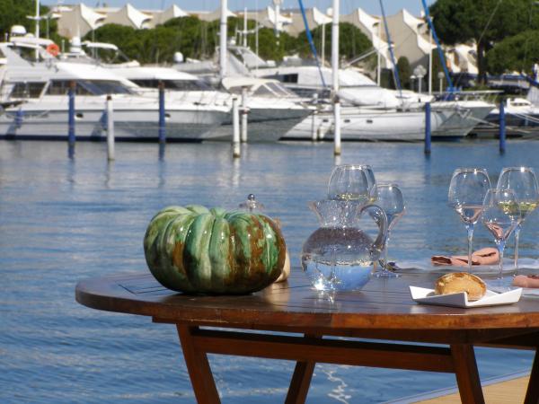 Au cœur du Port de plaisance se dresse une maison un peu magique, un peu irréelle. . . Un petit paradis plein de charme. Dehors une oasis de verdure, de pins et de palmiers majestueux, au pied d'une piscine chauffée plus bleue que la mer. Dedans des amours de chambres personnalisées, pensées jusque dans les moindres détails largement ouvertes sur une terrasse privative. Le restaurant "Carré des Gourmets" est un enchantement et une invitation à découvrir les arômes du Sud entre terre et mer. . .Salle de sport - Jacuzzi à débordement et salle de massage.