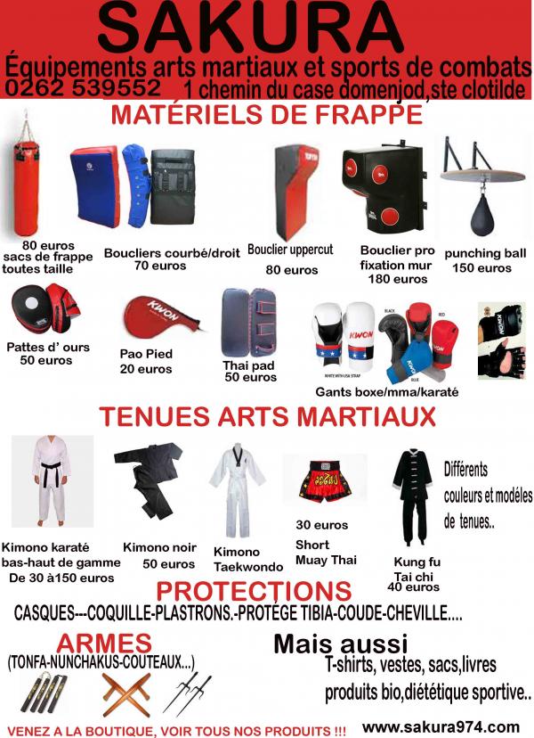 Magasin spécialisé en arts martiaux et sport de combats, vente de tenues arts martiaux(karaté, aikido, taekwondo, pencak silat, self defense, muay thai, . ) matériels de frappe(sac de frappe, pao, bouclier. . ) matériels de protection(plastron, casque. . GANTS MMA Armes traditionnelles(bo, tonfa, nunchaku, sai. . , livres, vente de produit bien être, médecine traditionnelle.