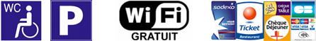 Mode de paiement: Espèces Chèques Cartes banquaires American express Tickets resto